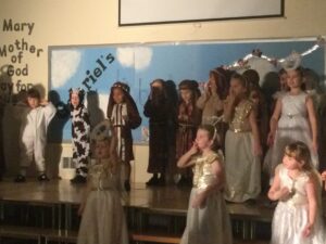 Class 4 wrote, created and performed a short play, as well as showing their Marian paintings.